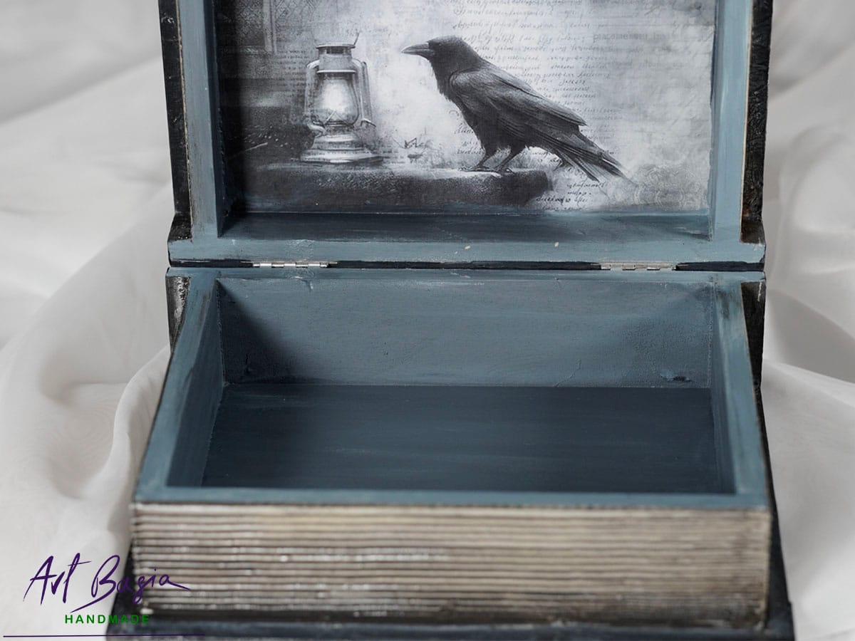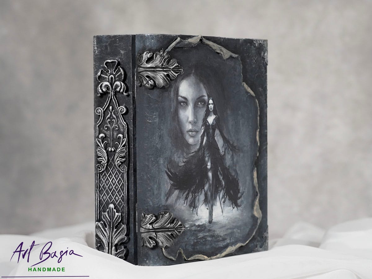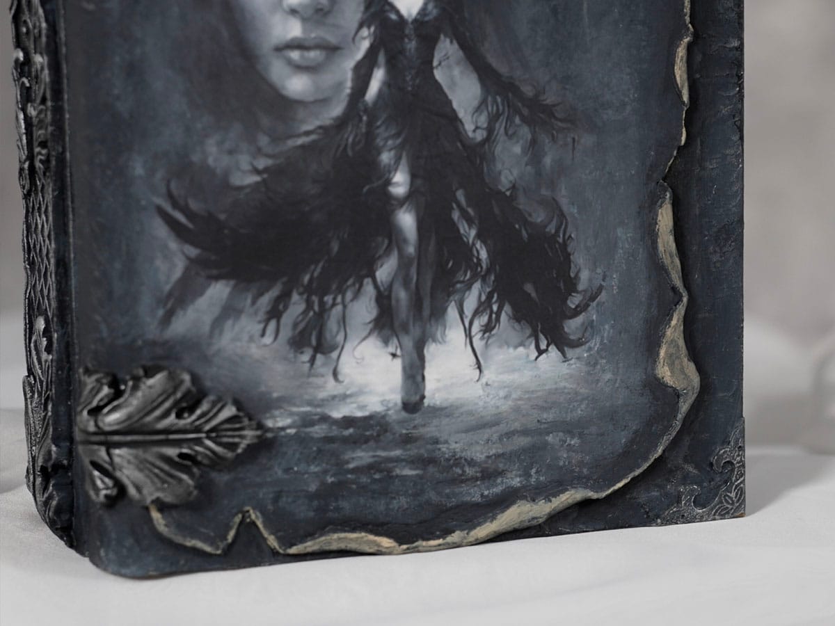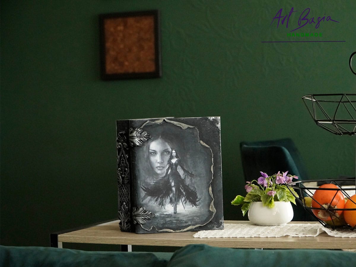 A inne… jakby same wybierały swój kształt, kolor i klimat. Ta drewniana księga od początku nosiła w sobie tajemnicę – jakby była fragmentem dawnej biblioteki, w której przechowywano opowieści o krukach, cieniach i nocnych wędrówkach po granicy snu.