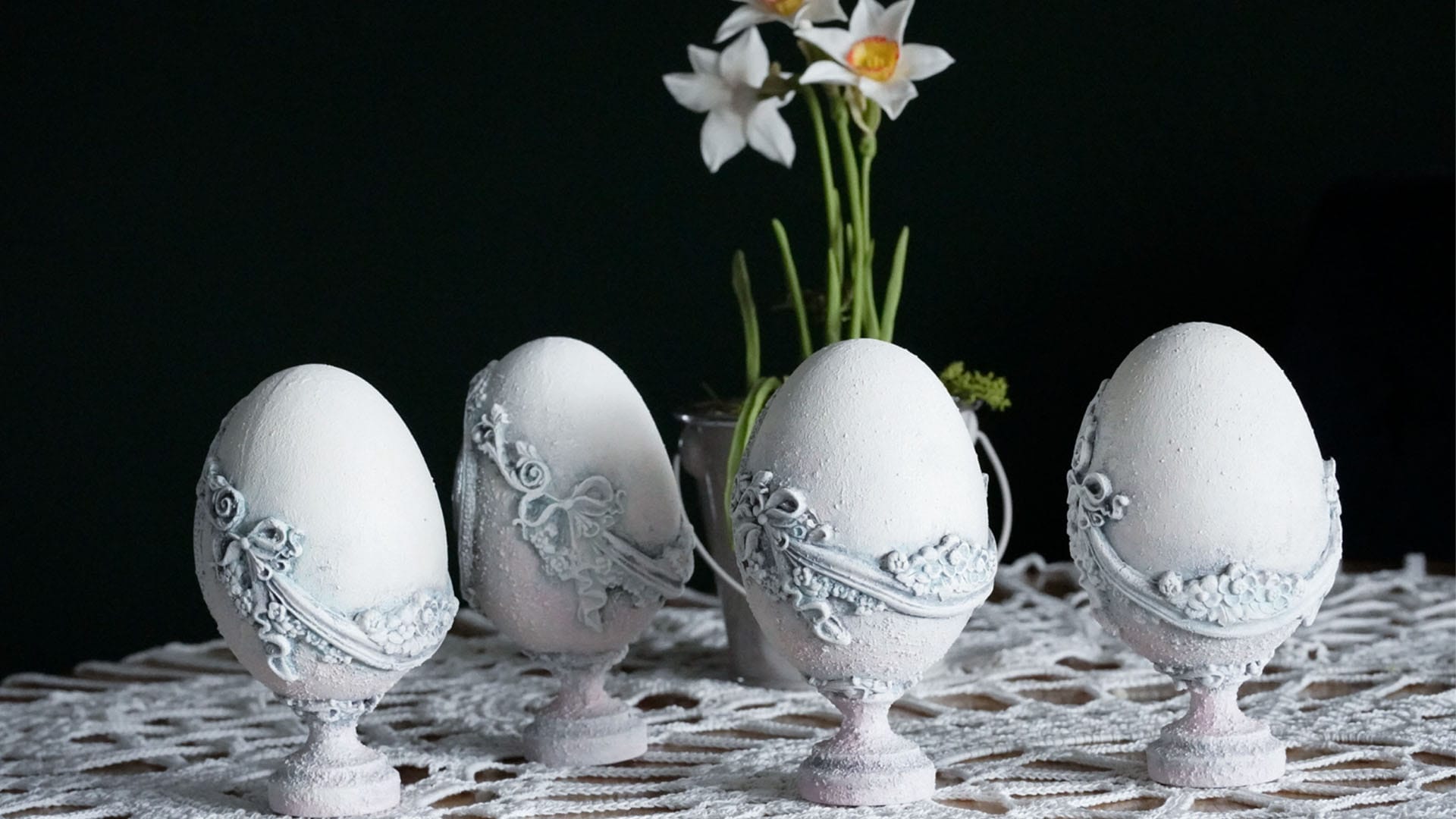 To właśnie one nadały jajeczkom efekt delikatnego upływu czasu – jakby były małymi pamiątkami z dawnych lat.