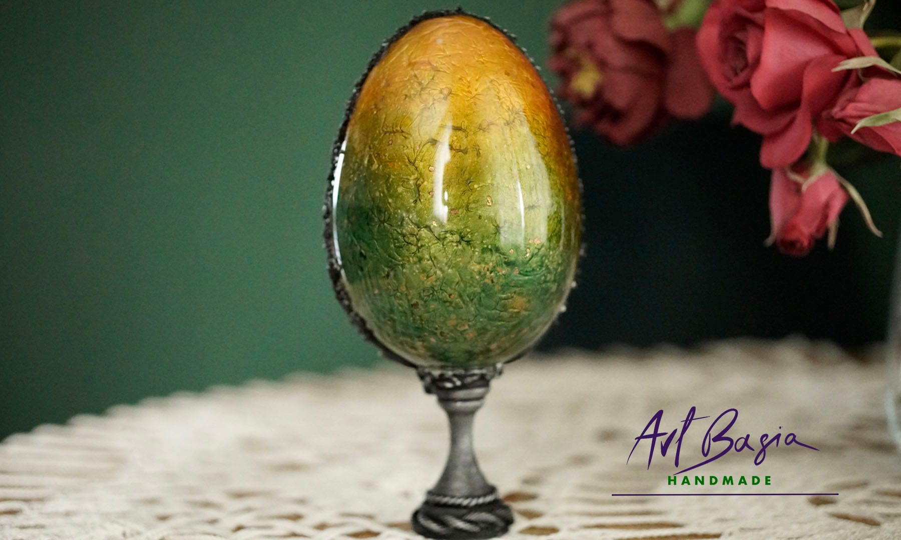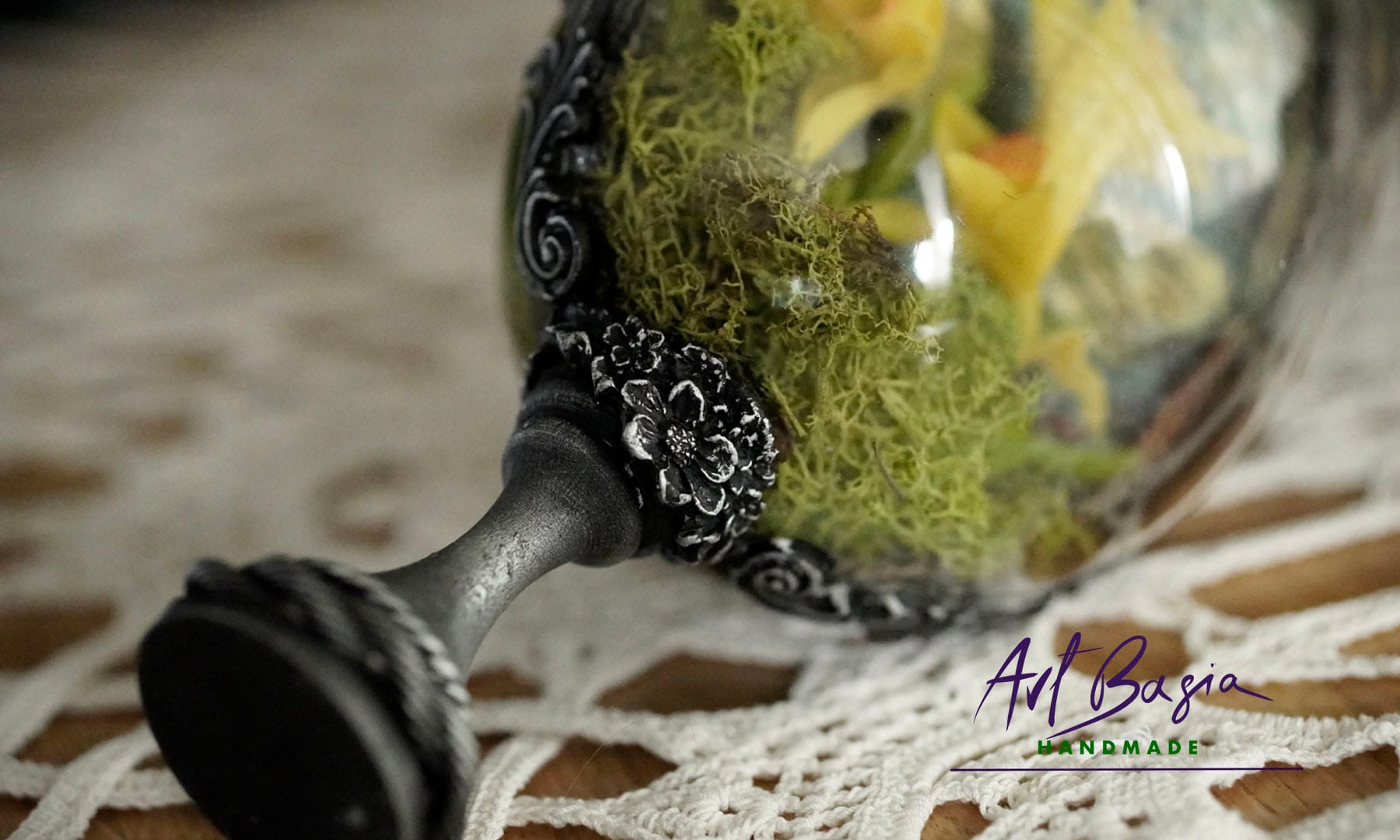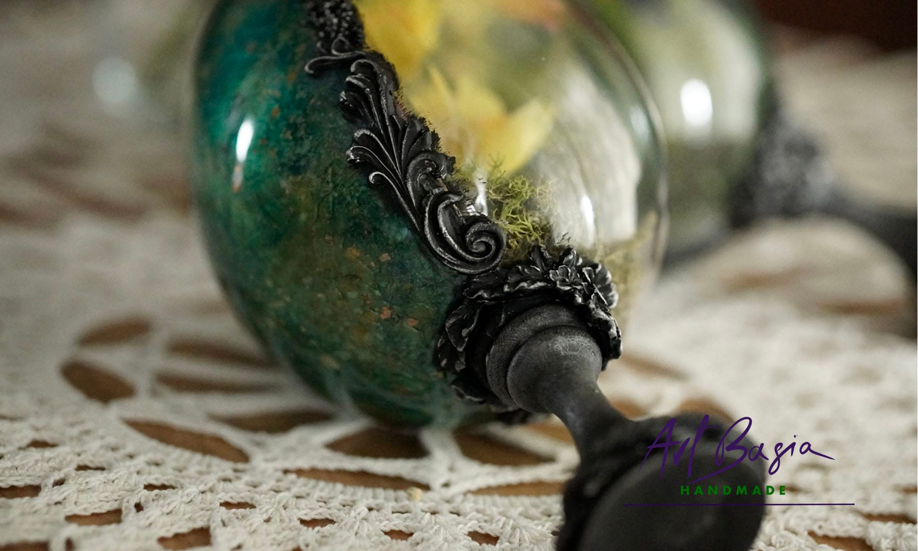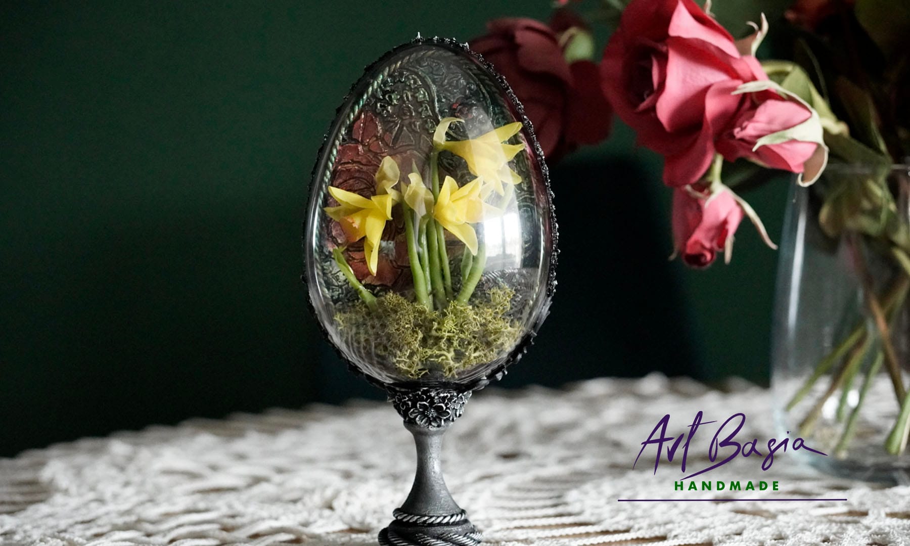 • Akrylowe jaja ArtBasia Handmade – zamknięte kompozycje z kwiatów, mchu i tuszy alkoholowych