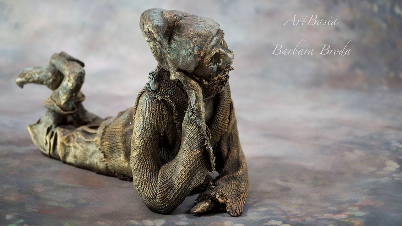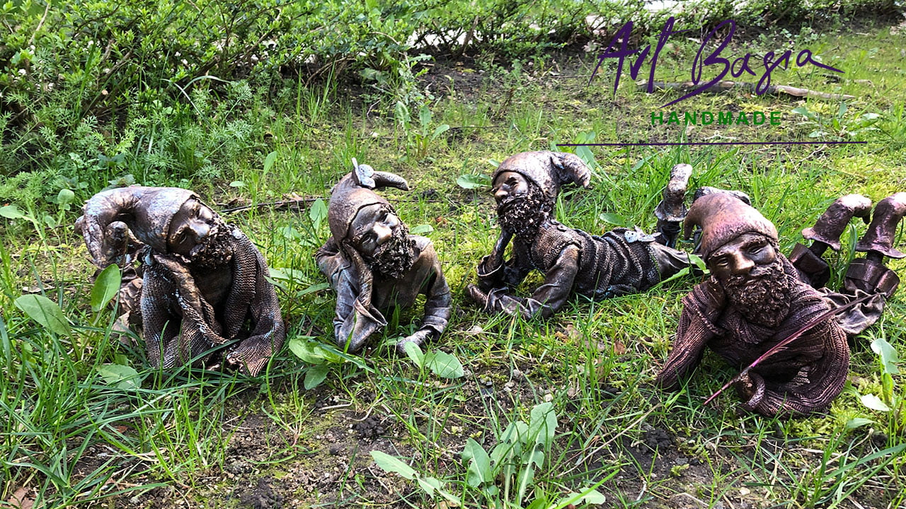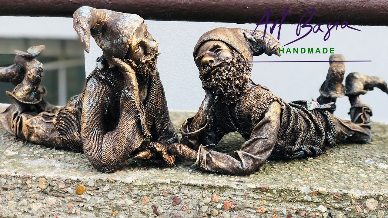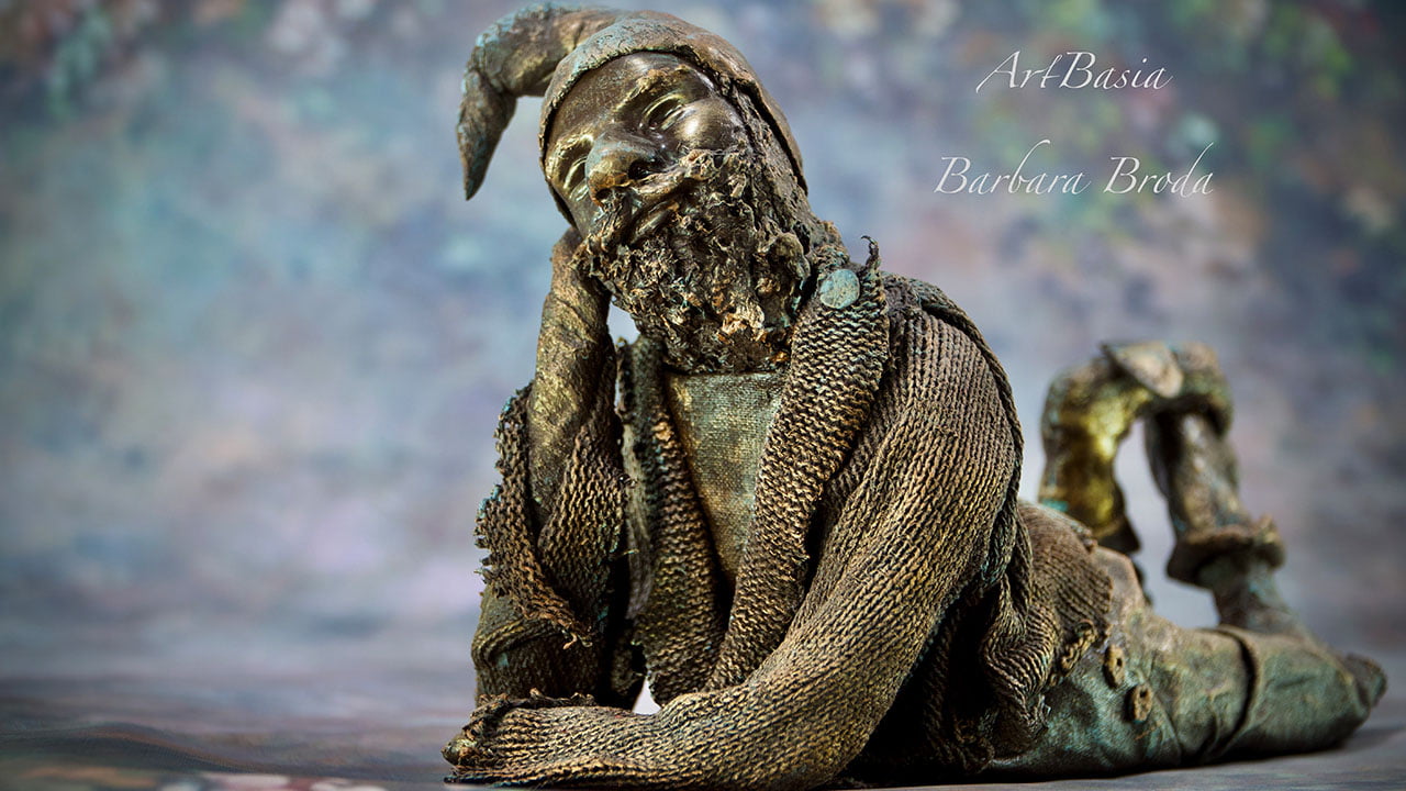 Dyzio to nie jest zwykły krasnal. To dzieło sztuki, które powstało na warsztacie, gdzie pod okiem doświadczonego artysty, krok po kroku, odkrywałam tajniki rzemiosła. Figurka, którą widzicie na zdjęciu, leży pochylony, zagłębiony w marzeniach lub zadumie, z jego charakterystyczną czapką spadającą lekko na bok, co dodaje mu zadumy i swobody. Jego broda i ubranie są wykonane z niezwykłą starannością, gdzie każdy warkocz brody, każda fałda szaty zdają się opowiadać własną historię.