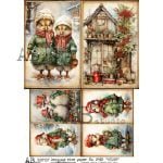 Prezentowany papier jest propozycją na Święta Bożego Narodzenia reprezentuje styl Vintage , mamy tu cztery piękne wzory na jednej karcie, jest tu dziewczynka, króliczek, zimowy widoczek z latarnią.