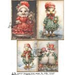 Prezentowany papier jest propozycją na Święta Bożego Narodzenia reprezentuje styl Vintage , mamy tu cztery piękne wzory na jednej karcie, jest tu dziewczynka, króliczek, zimowy widoczek z latarnią.