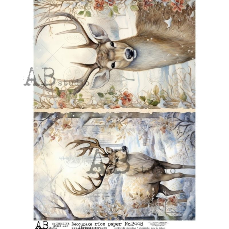 • ABStudio 2448 Papier ryżowy A4 Zimowe Jelenie