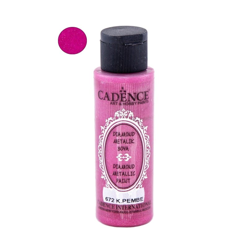 Kolor 672 K. Pembe z serii Cadence Diamond Metallic Paint to intensywny róż z wyraźnym metalicznym połyskiem i drobinkami rozpraszającymi światło – tworzy efekt diamentowego blasku.