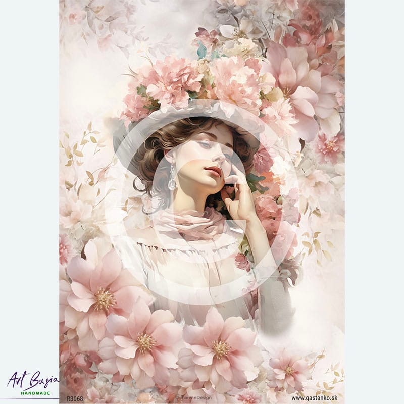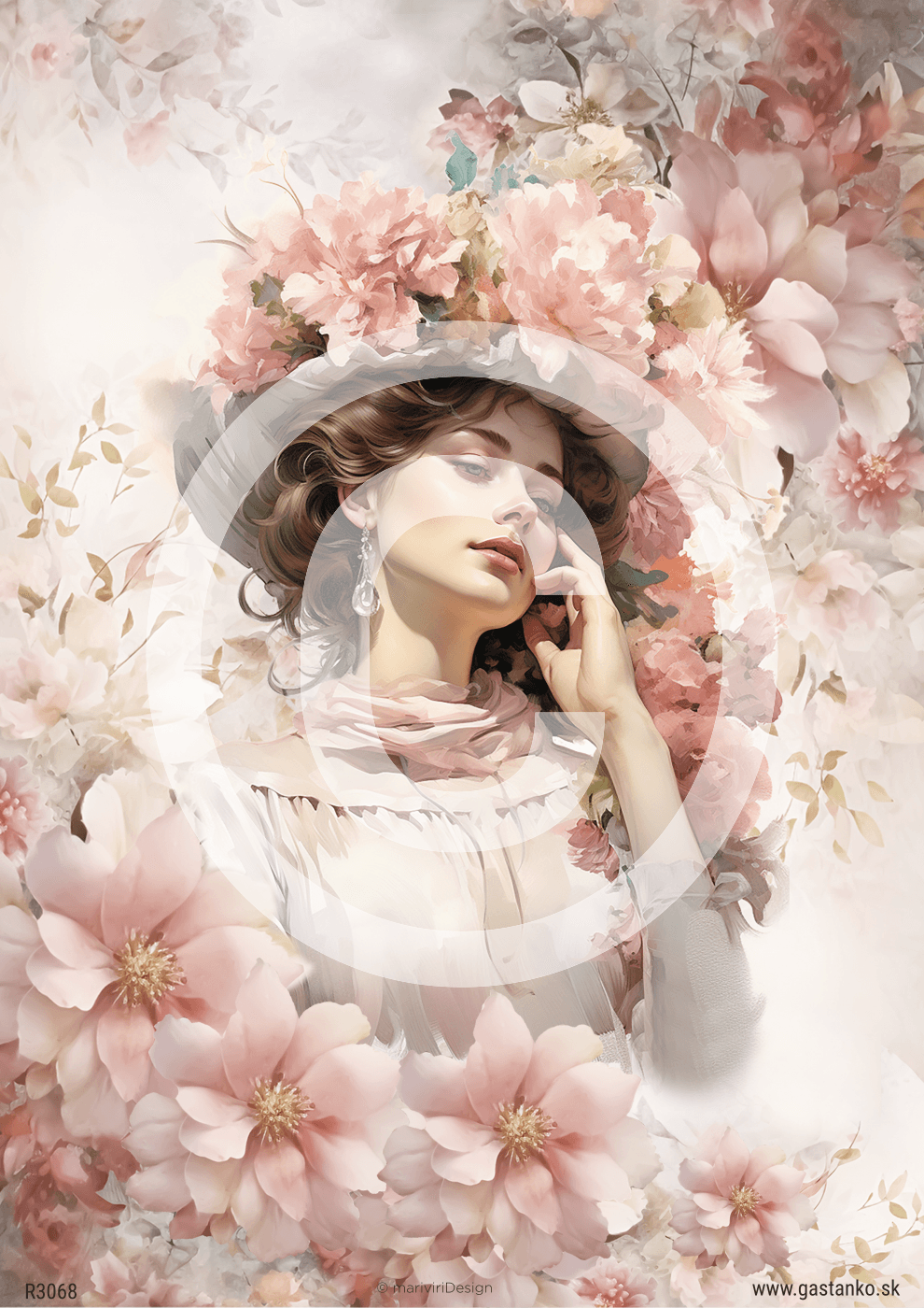 Papier ryżowy A4 “Dama w Kwiatach” (R4967) od MariviriDesign to doskonały wybór dla fanów stylu vintage i shabby chic.