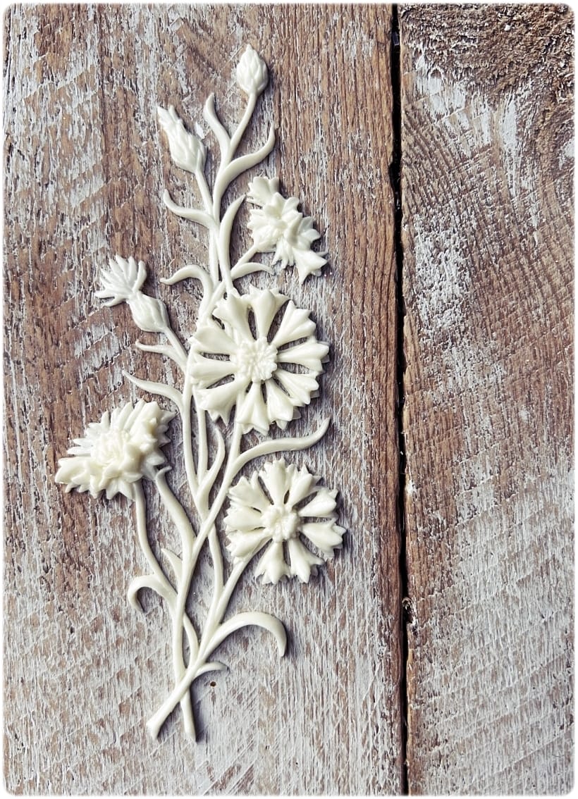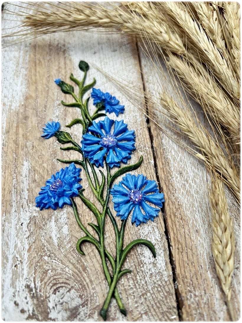 Forma silikonowa Chabry „Cornflowers” od Mila Projekt to doskonałe narzędzie do tworzenia delikatnych, kwiatowych zdobień. Idealna dla twórców decoupage, mixmediów, scrapbookingu i projektów DIY, którzy szukają naturalnych motywów inspirowanych polską łąką.