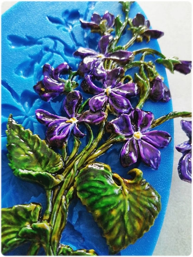 Realistyczne odwzorowanie kwiatów fiołków sprawia, że forma doskonale nadaje się do delikatnych dekoracji florystycznych, które sprawdzą się w ramkach, biżuterii, ozdobach ślubnych i aranżacjach vintage.