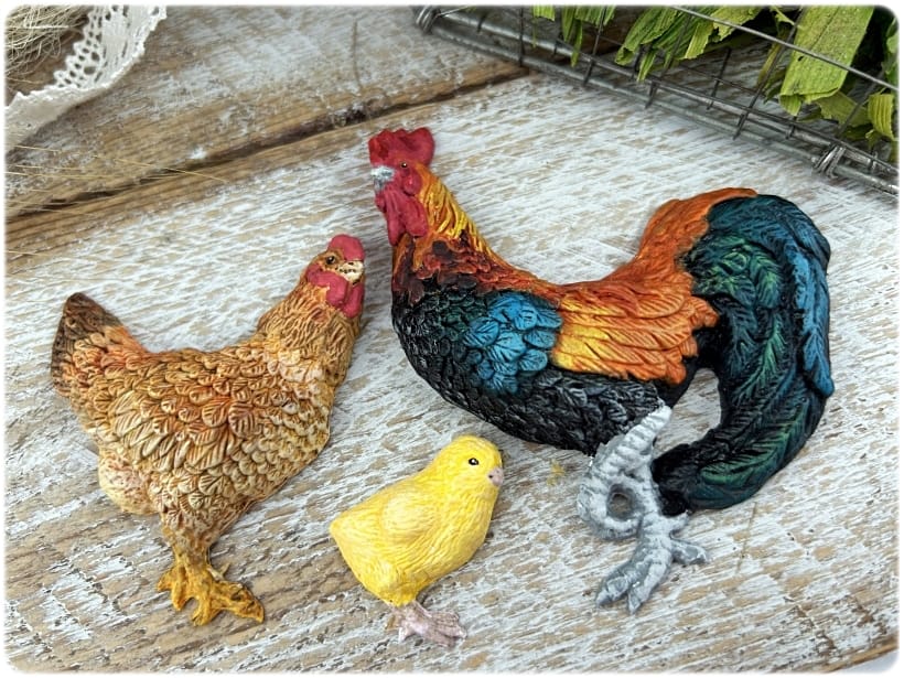 Forma silikonowa Kogut, Kura i Kurczątko „Hen Family” od Mila Projekt to wysokiej jakości narzędzie do tworzenia precyzyjnych, rustykalnych zdobień.