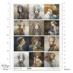 Na zdjęciu znajduje się papier ryżowy o kodzie R1252L, który przedstawia eleganckie, kobiece portrety w stylu inspirowanym secesją, bogatym w złote i niebieskie akcenty.