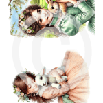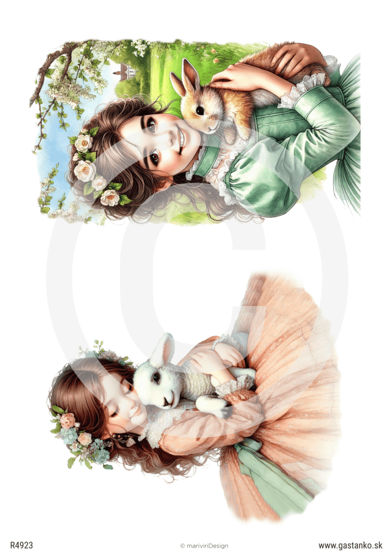 Przedstawiamy papier ryżowy A4 z nadrukiem w formacie A4, ozdobiony przepięknymi, nostalgicznie malowanymi ilustracjami dziewczynek ze zwierzętami.