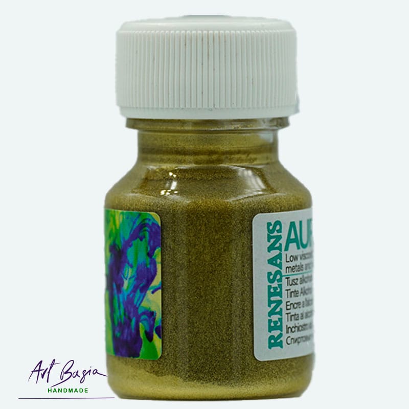 Renesans  Złoty Tusz alkoholowy AURA do tworzenia efektów dekoracyjnych na wielu powierzchniach, metalu, szkle, plastiku i innych gładkich powierzchniach.