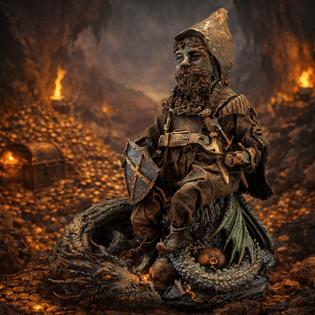 W najgłębszych komnatach jednej z takich gór spoczywał skarb. Stosy monet, stare pierścienie, zbroje zapomnianych królów i kamienie szlachetne, które pamiętały pierwsze światło świata. Nad tym skarbem czuwał smok – ogromny, potężny, o łuskach twardych jak skała.