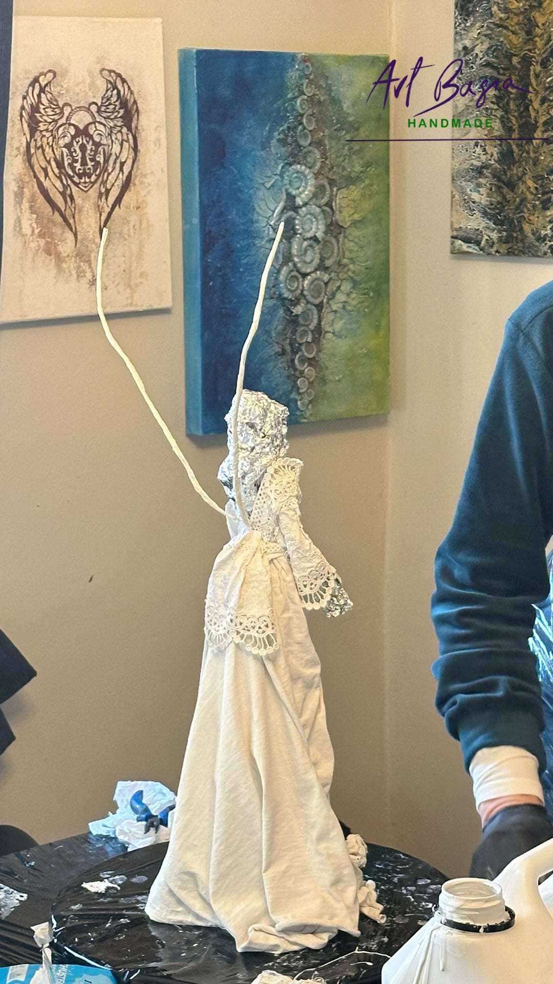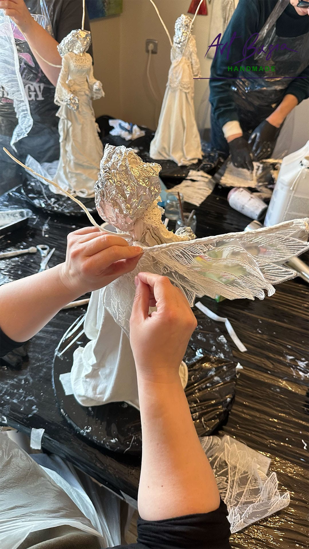 Spotkaliśmy się, aby wspólnie stworzyć wyjątkowe, ręcznie wykonane anioły w technice utwardzania tkanin, pracując wyłącznie na preparatach Powertex.